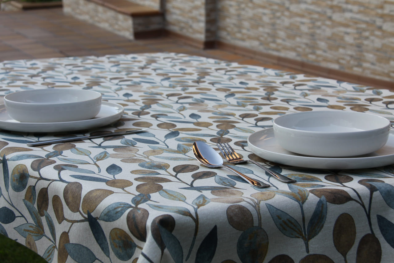 Mantel anti-manchas diseño hoja floral azul, ideal para un comedor, una terraza, una sala de estar o cualquier lugar de tu hogar para brindar estilo y funcionalidad. Los manteles anti-manchas resinados fusionan la modernidad y la suavidad, con la protección y la elegancia de la mesa de su hogar.